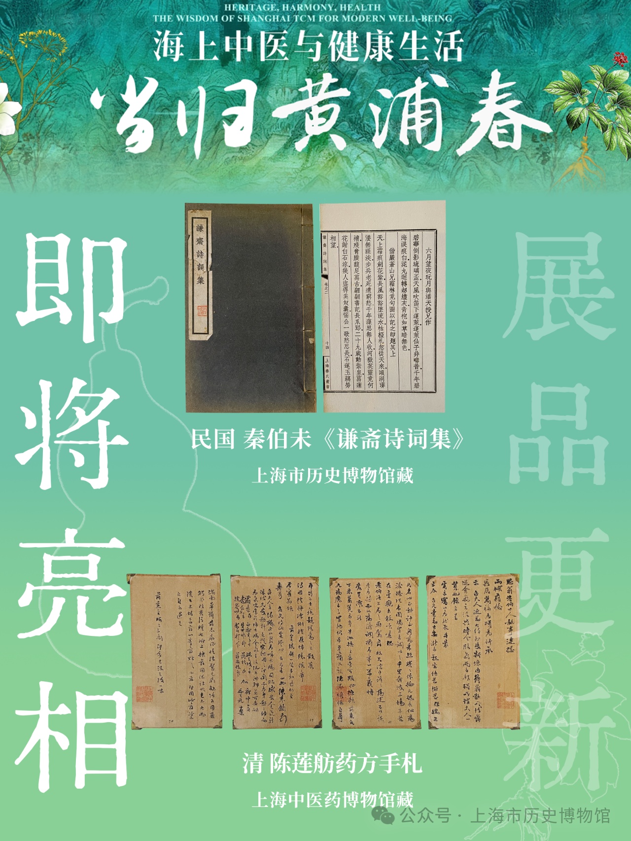 新的一年这场特展也有小惊喜4件文物即将亮相带来更丰富观展体验——⭐民国 秦伯未《谦斋诗词集》⭐清 陈莲舫药方手札⭐1913年 上海商埠巡警局解陆阿四行窃半夏卷宗 ⭐1940-1950年代 严二陵处方 上新时间:2026.1.13海上中医,精彩继续——当归黄浦春——海上中医与健康生活2025.11.22—2026.3.1上海市历史博物馆 东楼一楼无需预约,免费参观