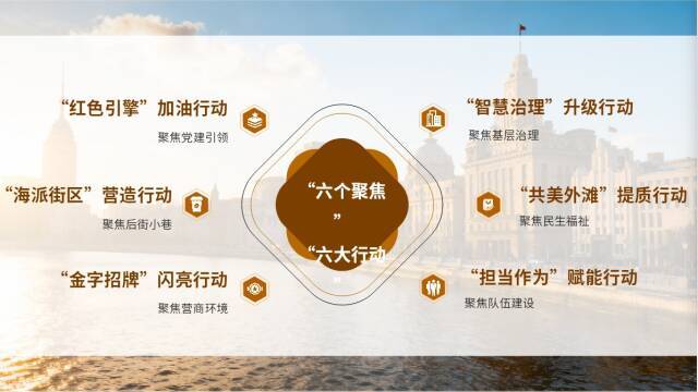 “2026六大行动”将聚焦党建引领,实施“红色引擎”加油行动,聚焦后街小巷,实施“海派街区”营造行动,聚焦营商环境,实施“金字招牌”闪亮行动,聚焦基层治理,实施“智慧治理”升级行动,聚焦民生福祉,实施“共美外滩”提质行动,聚焦队伍建设,实施“担当作为”赋能行动,勾勒出新一年的攻坚方向与实施抓手,为外滩发展注入新动力、描绘新路径。