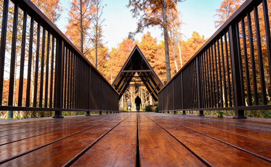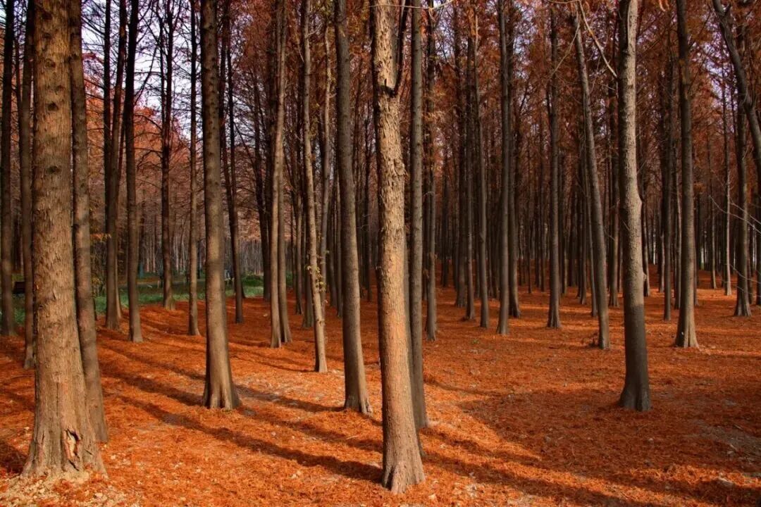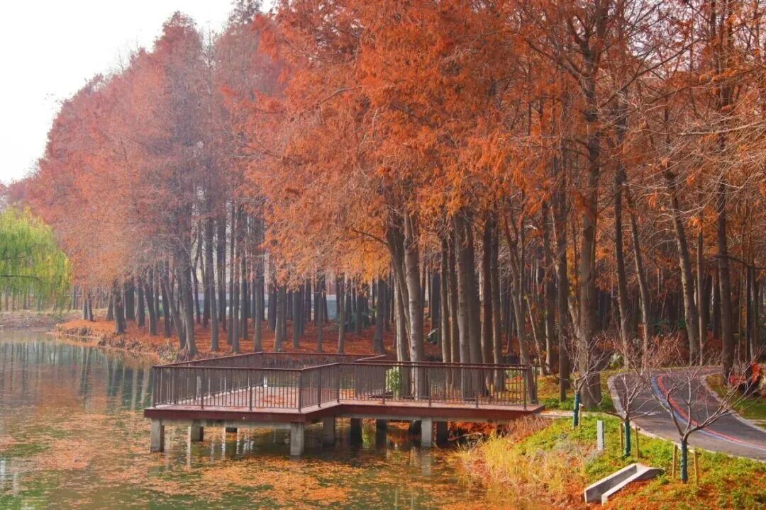 魔都“小兴安岭”秘境 作为公园的核心王牌,这片近8000平方米的水上森林堪称沪上稀缺的林水秘境。 一片如翡翠浮岛般的水上森林静静铺展于碧波之上,2000余株池杉、水杉与落羽杉根植清流,四季轮转间,演绎出翠绿、金黄、绛红的自然画卷。 蜿蜒的木质栈道深入林中,既不破坏生态,又能让你沉浸式穿梭其间,近距离感受草木清香与水波荡漾的惬意。 晴天午后是最佳观赏时段,阳光穿透杉叶洒下斑驳金影,橙红到铁锈红的渐变枝叶倒映在水面,碎光粼粼,氛围感直接拉满。 漫步其间,鸟鸣虫吟相伴,仿佛闯入城市中的自然净土。 现在落羽杉虽已进入观赏尾声,但枝叶与倒影的韵味依旧在线,再不去就又要等一年啦!