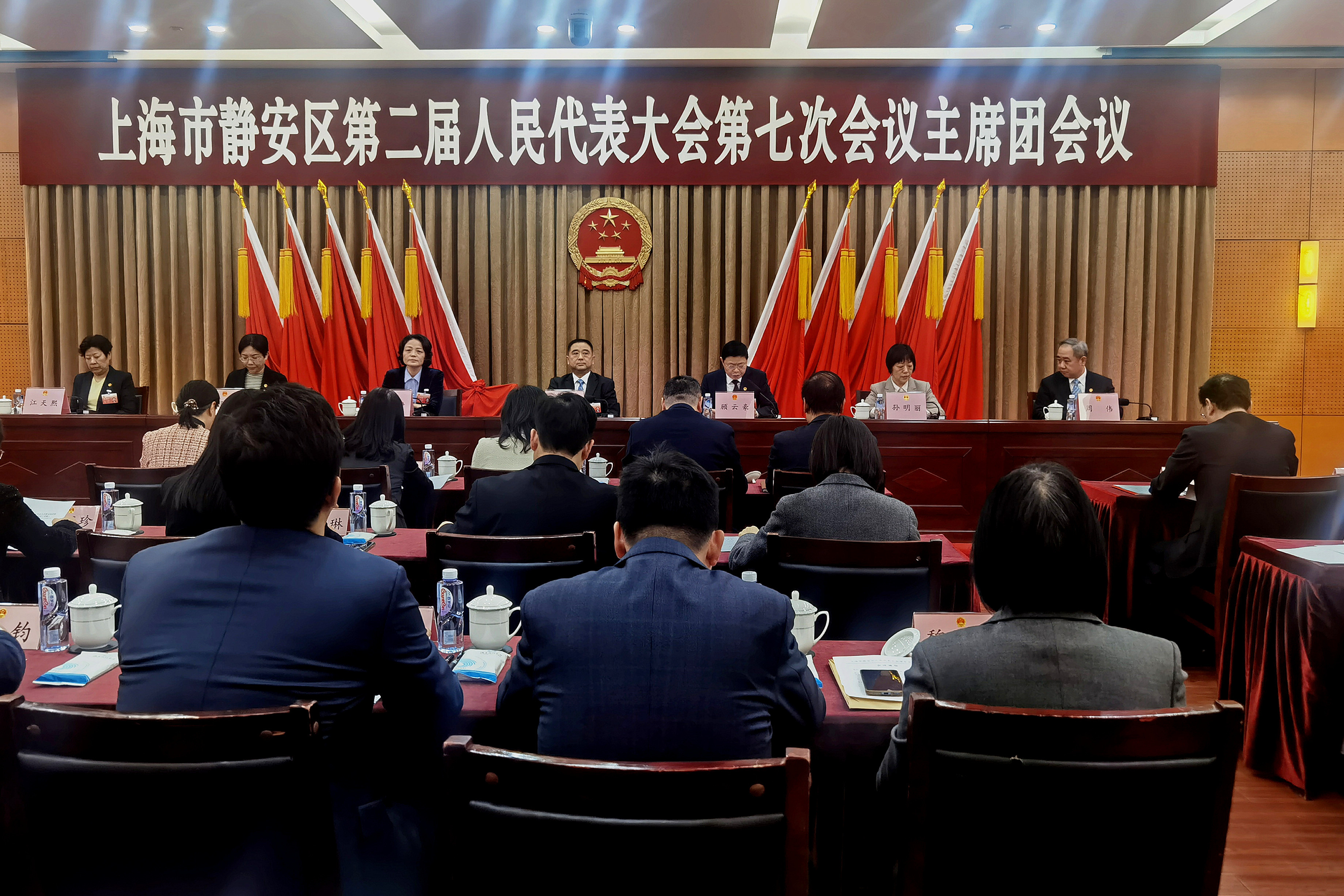 1月13日下午,静安区第二届人民代表大会第七次会议预备会议后,大会主席团举行第一次会议。
