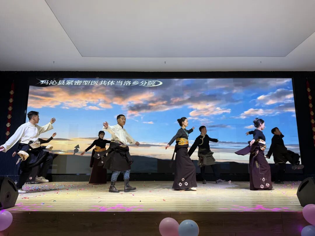 晚会演出环节,玛沁县人民医院职工带来极具藏族特色的歌舞表演,展现出高原医务工作者的昂扬风貌,赢得现场观众阵阵掌声。援青医疗团队代表带来的越剧《陆游与唐琬》选段,让现场观众近距离领略江南戏曲的温婉隽秀,实现了高原文化与江南文化的精彩碰撞。现场观众称赞,这样的文化交流形式生动鲜活,让人深切感受到不同地域文化交融的独特魅力。