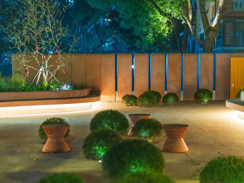 在1294号建筑与绿地开放区域之间的通行道上,原遮蔽顶棚被移除,天空视野得以完全展开,极大地削弱了封闭感,使行人能一眼望见内部街巷的层次与绿意,提升了区域的开放性与吸引力。主通道一侧的墙面选用与愚园路历史风貌相协调的色彩、材质重新铺贴,确保了片区视觉上的连贯与和谐。