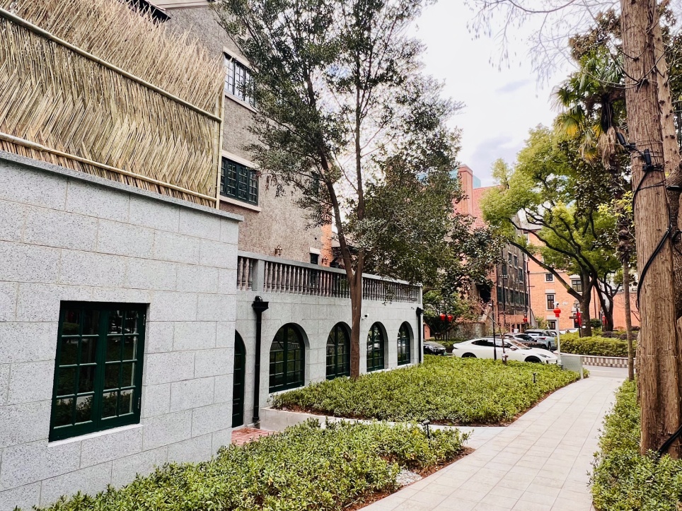 愚园路1294号建筑及其周边地坪也已全面翻新,充分考虑了建筑铺装与整个愚园路街区风貌的协调性,确保与周边历史建筑群和谐统一,共同维系了街区连续、完整的历史场景与空间肌理。