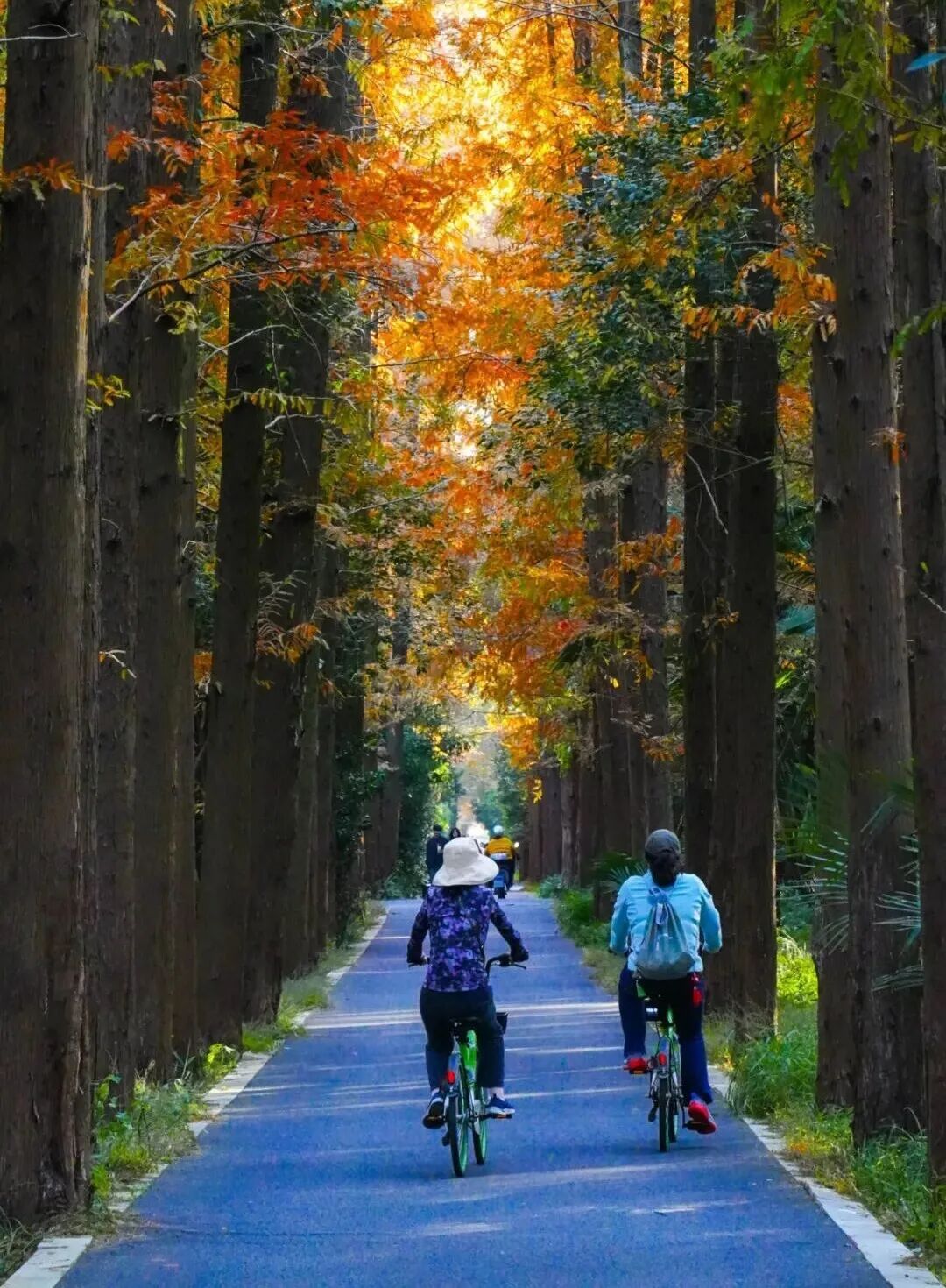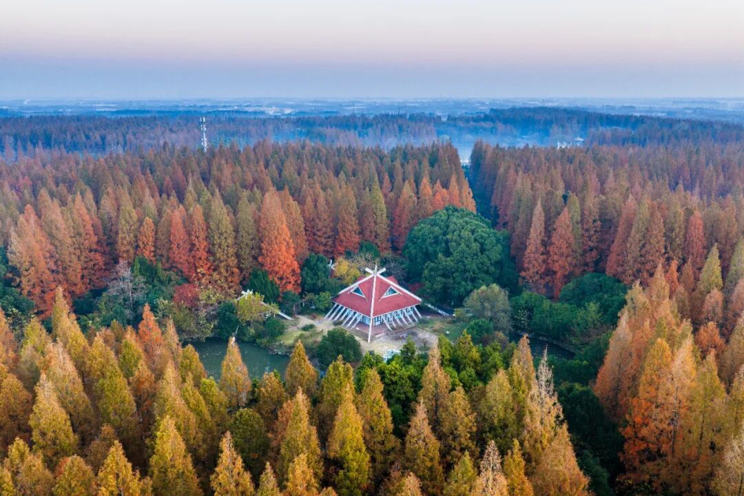 冬季出片圣地!公园最震撼之处在于其规模与纯粹。这里森林覆盖率超过90%,以水杉、杉木、香樟等乔木为主,构成了一个巨大的天然氧吧。冬季前来,虽然部分树木落叶,但成片的水杉林会换上红褐色的冬装,笔直的树干指向天空,在阳光下形成独特的光影线条,显得格外宁静、肃穆而富有诗意,是拍摄冬日森系大片的绝佳背景。公园内道路平坦,非常适合租赁自行车或乘坐观光车游览。上午就主打一个赏景,穿梭水杉林,枫树林间,自由呼吸。元旦期间,还有骑行挑战活动,可以来参加哦!