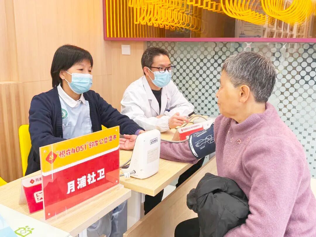 每月20日在友间公寓党群服务中心举办的“邻友公益集市”是居民最熟悉的健康服务“固定打卡点”,通过月浦区域化党建平台整合区域内医院和社区卫生服务机构的资源力量,每月定时定点为社区居民和新兴领域群体带来健康义诊咨询服务。现场除了设有心内科、泌尿外科、儿科等专家义诊外,还有血压血糖检测、慢性病用药指导、中医体质辨识等医疗指导服务和通俗易懂的健康讲座,“家庭医生签约”等服务还能现场办结,通过资源有效整合,社区群众在党群服务阵地内就能“一站式”享受到全方位健康服务。