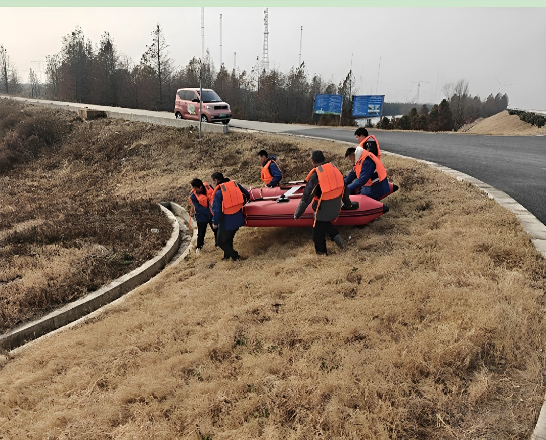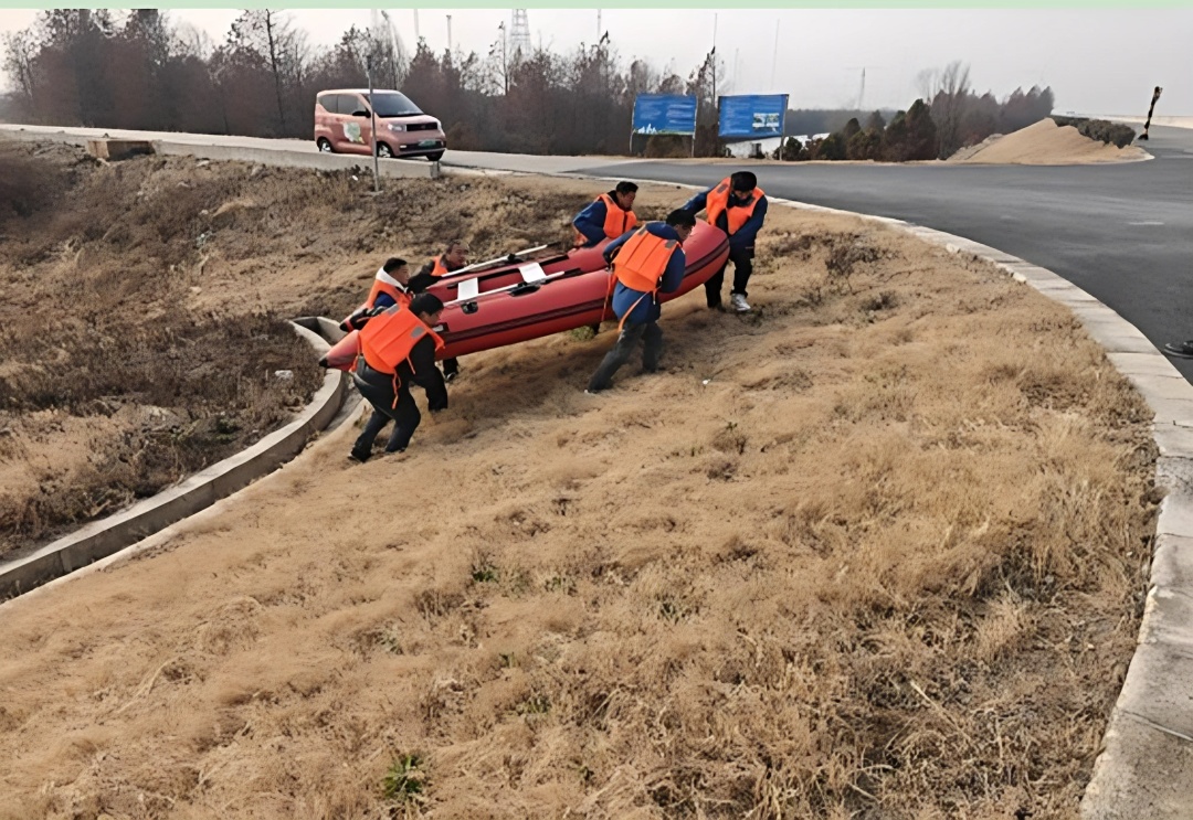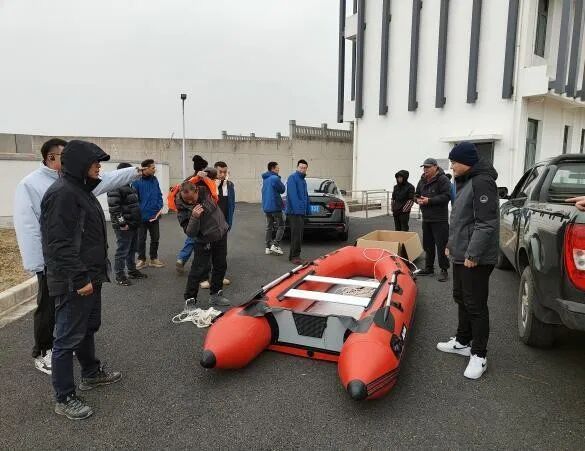 演练现场,救援人员身着专业救生装备,迅速将橡皮艇搬运至岸边,按预定流程娴熟组装、调试,动作流畅、配合默契,短短几分钟内便完成了橡皮艇的组装与下水准备工作,展现出高效的应急反应能力与扎实的专业素养。