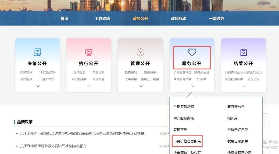 登录官方门户网站“上海市发展和改革委员会”(https://fgw.sh.gov.cn/),点击“政务公开-服务公开-市民价格信息指南”查看全文