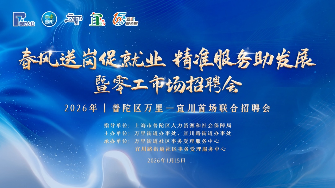为全面推进“15分钟就业服务圈”建设,延伸公共就业服务送至群众“家门口”,更好地满足高校毕业生、就业困难人员等重点人群的求职需要。万里街道携手宜川路街道,将于1月15日在普陀区万有引力新业态新就业群体党群服务中心(新村路661号)开展“春风送岗促就业 精准服务助发展暨零工市场招聘会”。