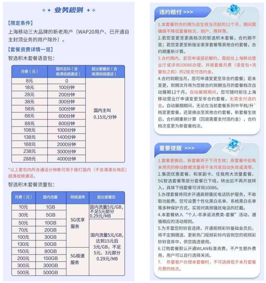 2023年7月,团队成员小王在中国移动手机App上购买“智选积木套餐”。2024年上半年,小王想要更改积木套餐,于是拨打10086询问,得知需满一年合约期方可更改合同套餐内容。一年合约期满后,小王再次拨打10086,被告知需身份证件认证。而当他在App上查询更快捷的改套餐方式时,却发现即便过了合约期,手机端也无法选择更低档套餐。