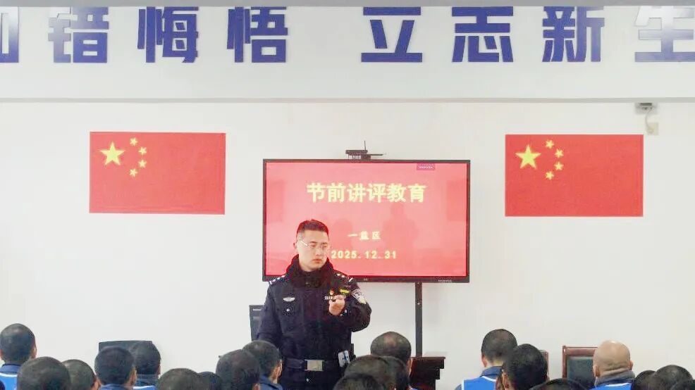 【注释:这是2025年最后一天的集体讲评。民警盘点了一年里罪犯在集体活动中展现的所有努力,引导他们把这些点滴转化为向上向好的自我认可,新的一年更进一步,彻底告别旧我,迎接新我,帮助实现“总结-肯定-期望-指引”的连贯引导和闭环】