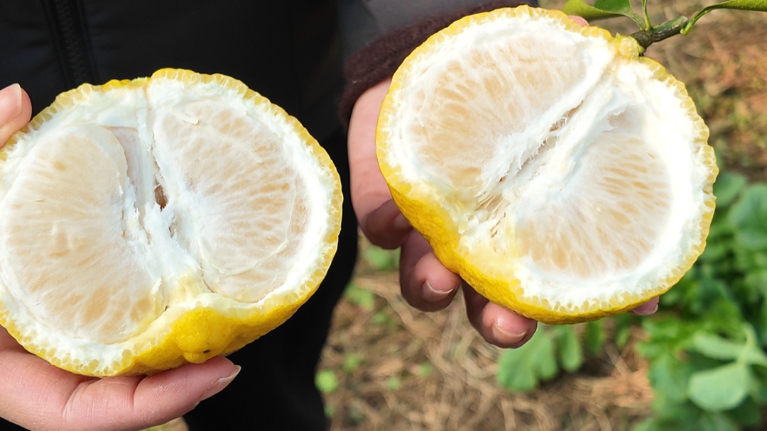 记者了解到,“春香” 是橘、柚、柠檬的杂交品种,除了果肉可食用,果皮还能用来制作柠檬蜂蜜柚子茶,实现 “一物多用”。此外,该品种保鲜期较长,常温下可存放20天左右,只要存放得当,糖分还会不断积累,越放越甜。