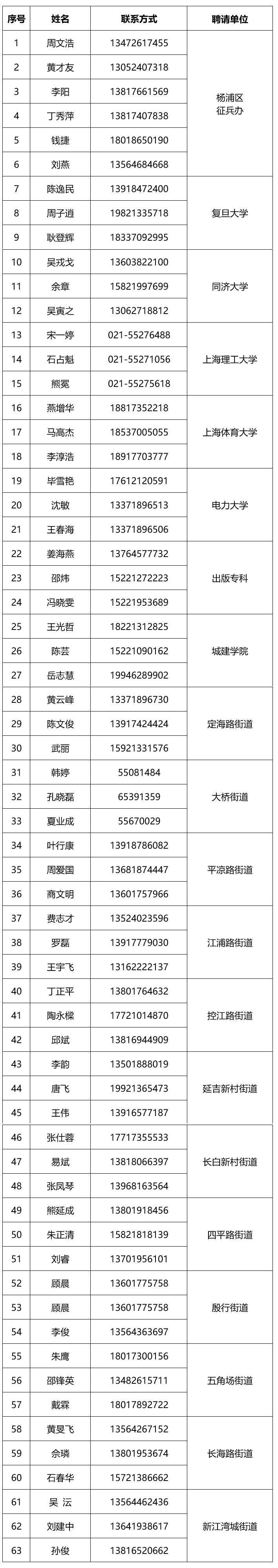 2026年杨浦区征兵办廉洁征兵监督员名单