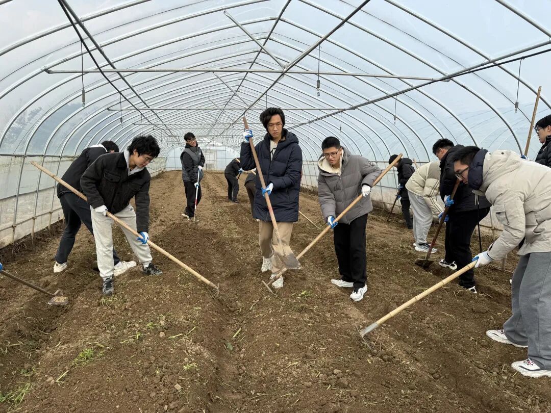 另一边的蔬菜大棚内,学生正沉浸于基础的农事劳动。他们戴着手套,手持农具,分组进行翻地、除草、筛选和栽种菜苗等实践。对于许多来自城市的学生而言,这是他们首次真切地脚踩泥土,体会农业生产的艰辛。学生刘津滟分享道:“这是一次非常新奇的体验。弯腰劳作很辛苦,但看到整齐的田垄和亲手栽下的菜苗,成就感很强。这让我对‘创造价值’有了超越书本的直观理解,也更能体会到乡村振兴战略的深远意义。”