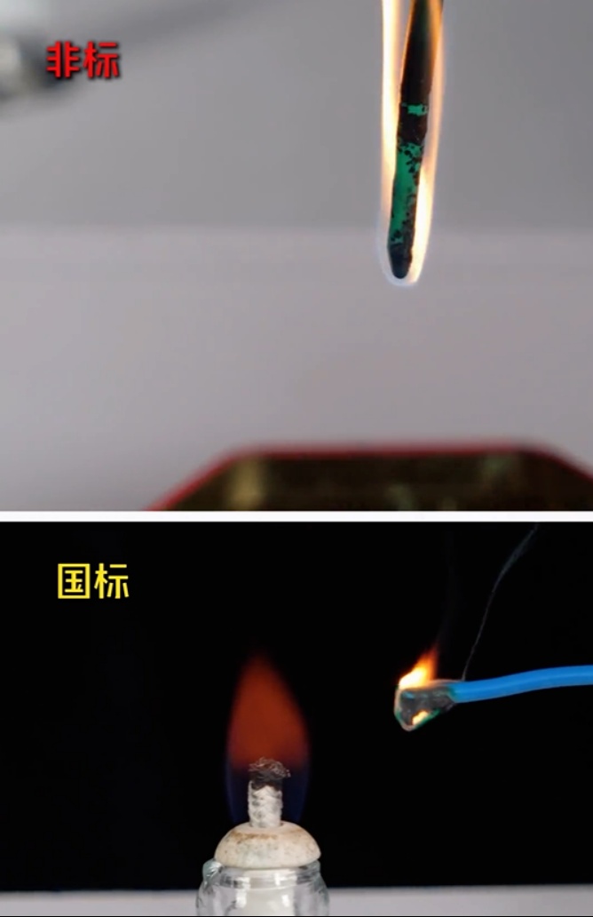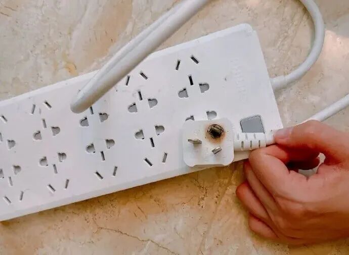 绝缘燃烧测试 点燃一小段电线,观察其燃烧情况。正品国标电线绝缘燃烧缓慢,甚至能做到离火自熄且无刺激性气味;劣质电线燃烧剧烈且有刺鼻气味且会滴落高温塑料导致助燃。 面对日益复杂的造假手段,最有效的防范方式就是坚持从官方授权渠道购买。也呼吁广大消费者提高警惕,增强辨别能力,坚决抵制假冒伪劣产品。切勿贪图便宜,购买来源不明、价格远低于市场价的“特价线”,一分钱一分货,让每一根国标电线都成为守护家庭的“安全卫士”,而非潜藏风险的“定时炸弹”。 拖线板:小物件,大风险 劣质插排常见风险:外壳使用劣质塑料、无安全门、铜片薄、焊点虚接,易引发触电、短路或火灾。 认准品牌与正规渠道 请尽量选择知名插排品牌,并通过品牌官方旗舰店、大型商超或授权经销商购买,避免路边摊、非正规网店等渠道。