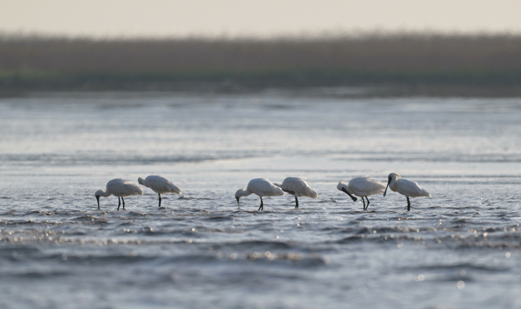 黑脸琵鹭、黄嘴白鹭、黑嘴鸥等珍稀物种频繁现身,已有阔嘴鹬、中杓鹬、翘嘴鹬、针尾鸭等10种水鸟的数量达到该种群全球个体数量的1%以上。每年春秋迁徙季,大量候鸟在此停歇、换羽、觅食补充能量,冬季则有众多水鸟在此越冬。