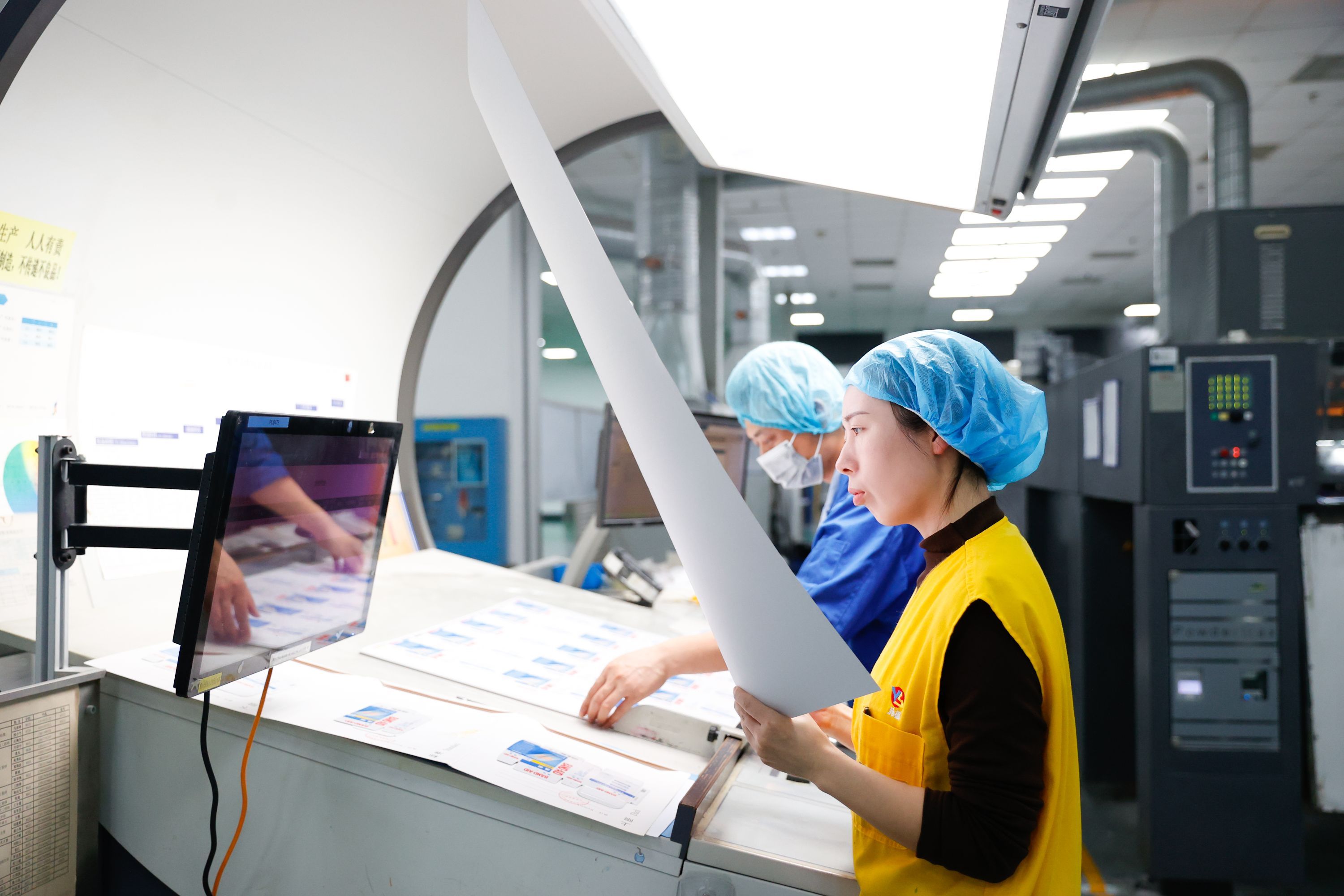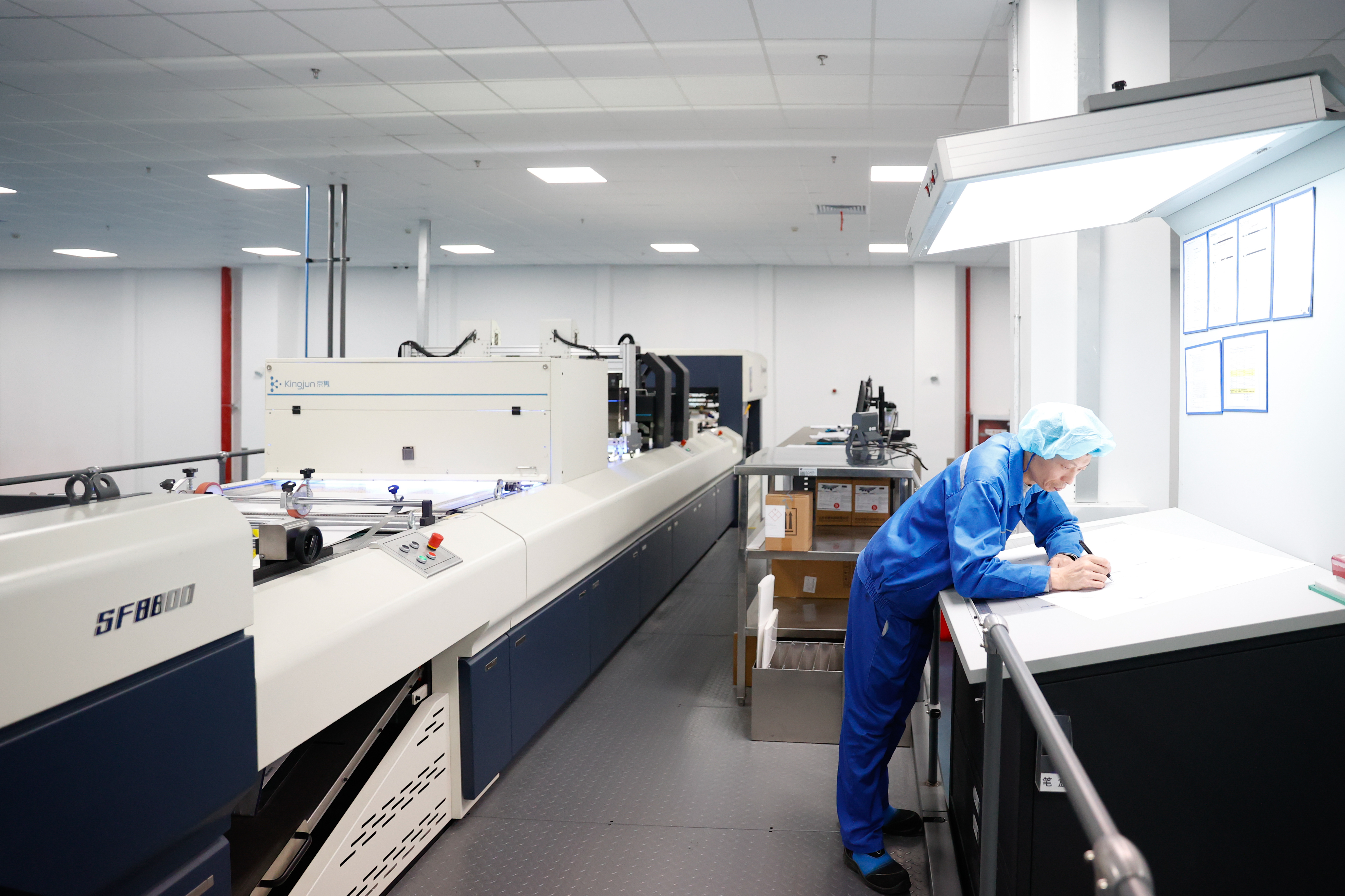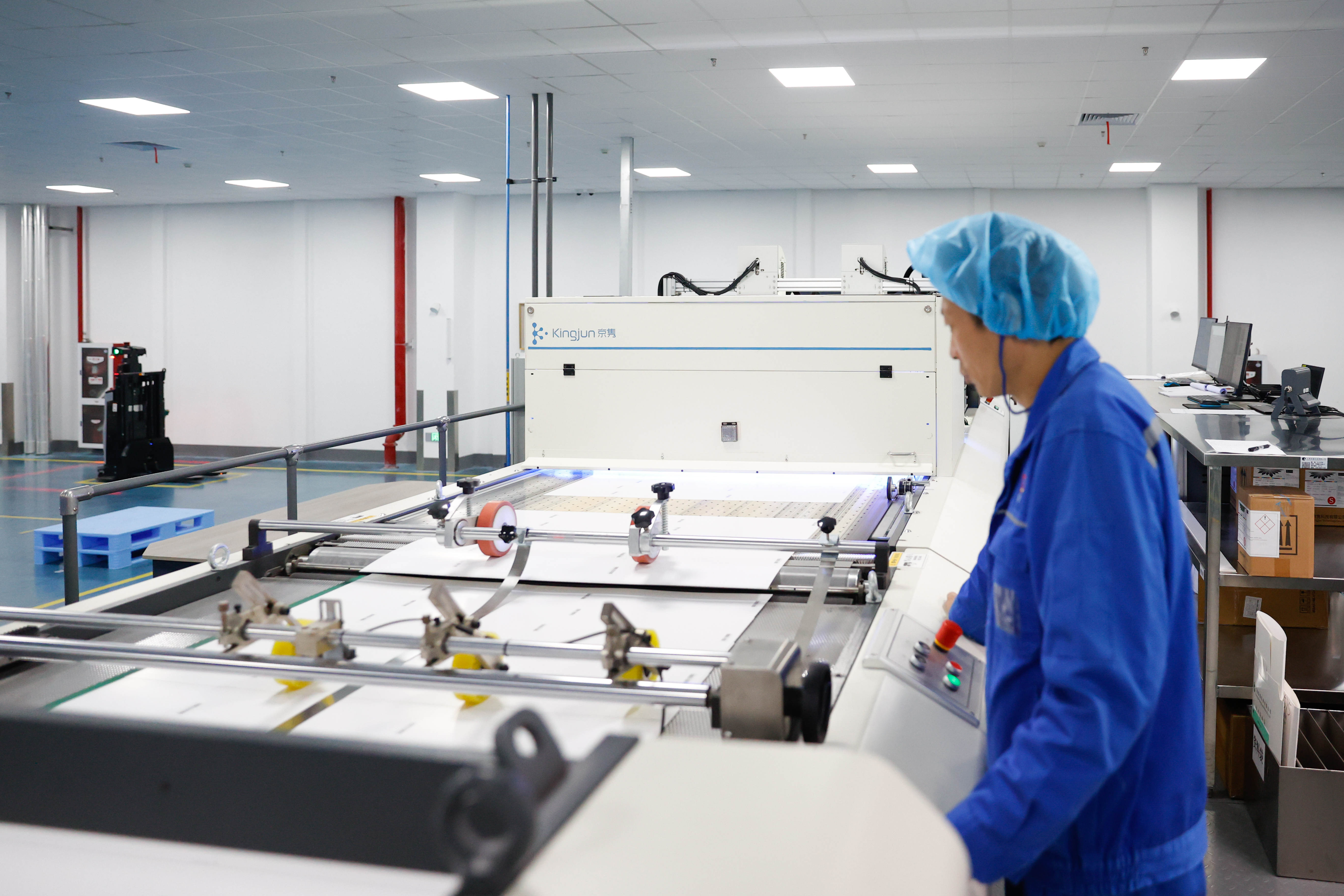 工人正在操作印刷设备。