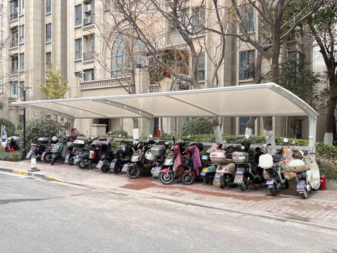 远洋悦庭通过“三驾马车”协同,对非机动车棚进行扩容升级并加装消防与监控设施。
