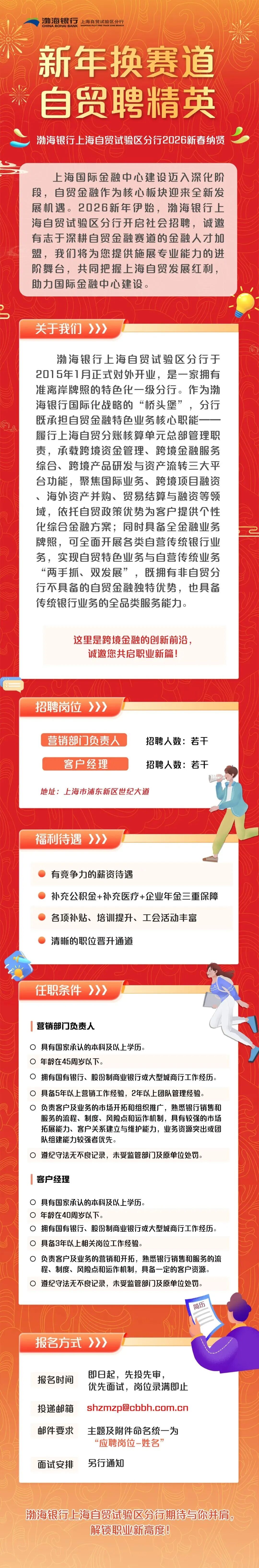 渤海银行上海自贸试验区分行社会招聘