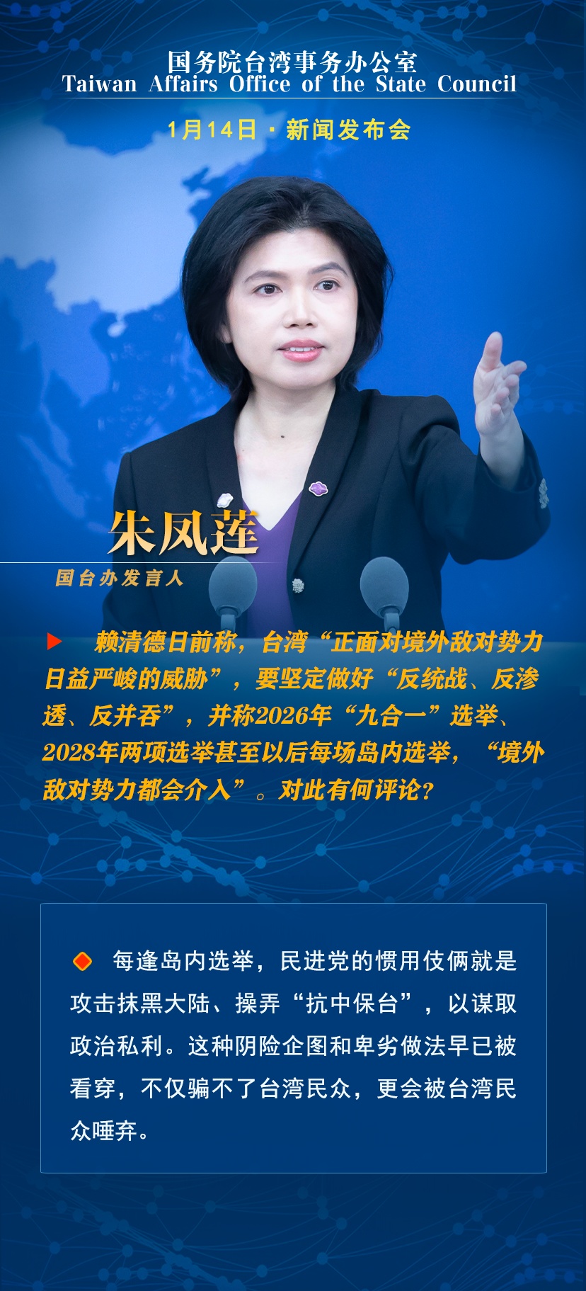 国台办:“台独”分子越疯狂,反“独”的绳索就勒得越紧