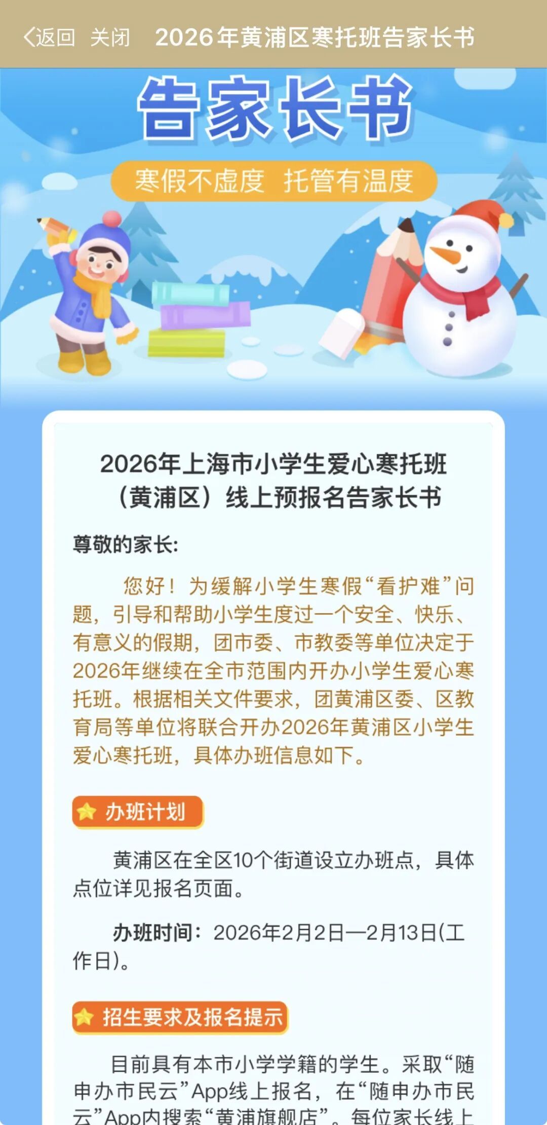 2026年黄浦区小学生爱心寒托班又来啦~