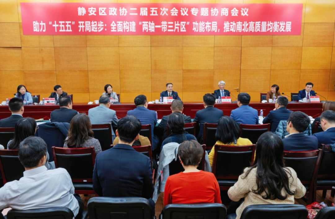 1月14日,静安区政协二届五次会议举行“助力‘十五五’开局起步:全面构建‘两轴一带三片区’功能布局,推动南北高质量均衡发展”专题协商会议。