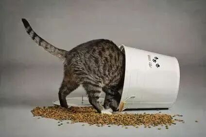 家猫运动较少,自助餐容易让猫咪吃的没有节制导致过胖,而且猫粮长期暴露在空气中,容易导致口感变差甚至变质。
