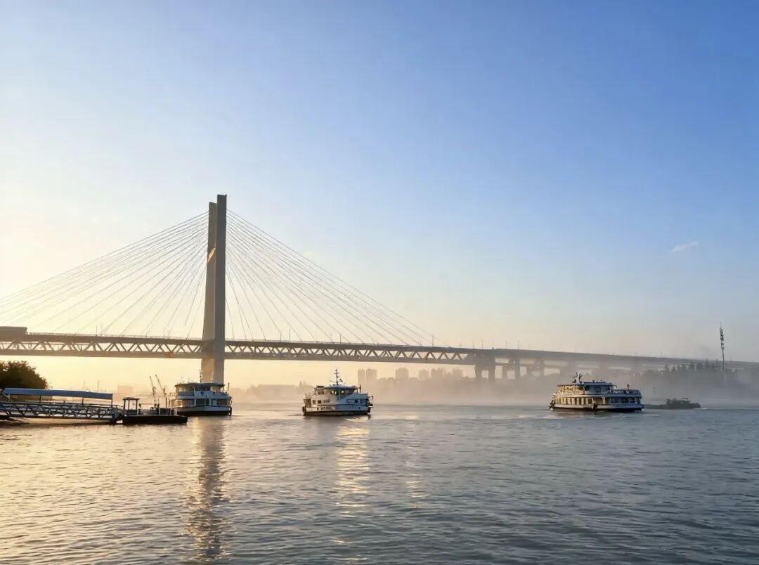 大桥不只是交通的纽带,更是这座城市灵魂的延伸。站在桥头远眺,城市的喧嚣在远处连成一片,高楼的轮廓在冬日的清晨中显得柔和而遥远。唯有桥,倔强地伫立在天地之间,连接着两岸的生活与情感。