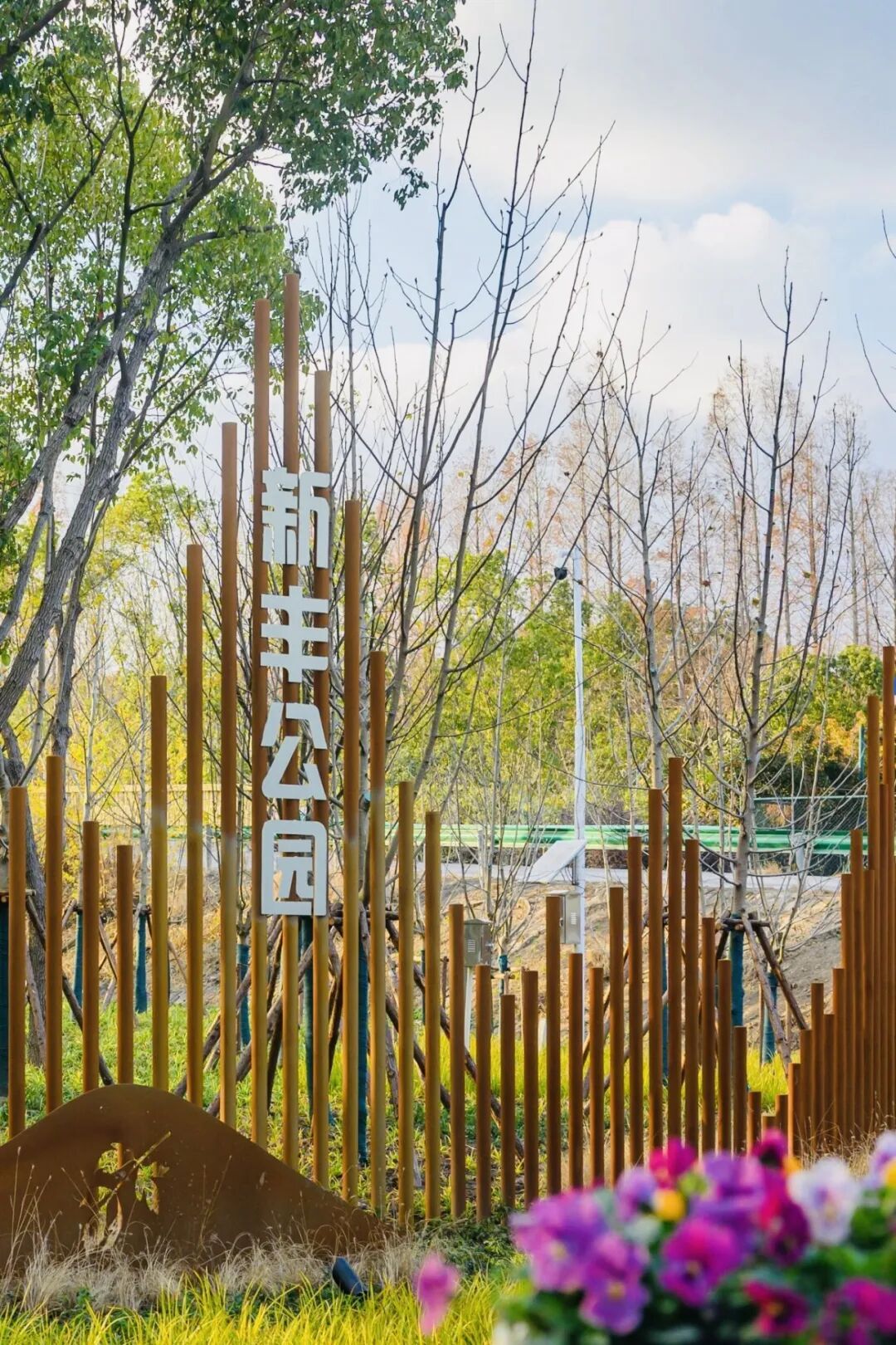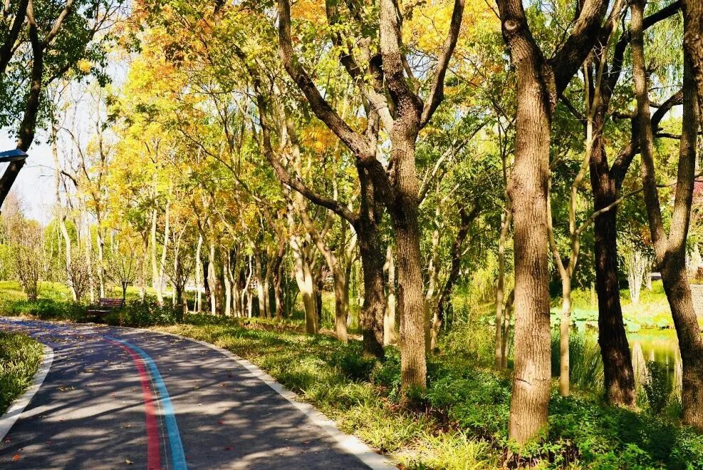 新丰公园以“森林游憩”为核心,巧妙融合张江镇非遗皮影文化,打造“礼悦相迎”的生态门户。