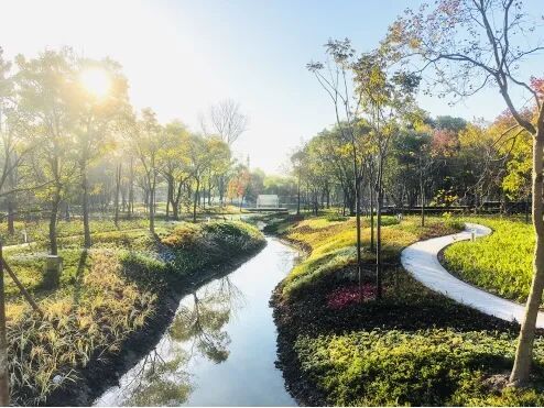 全园以“多彩森林、缤纷水岸”为植物主题,打造特色群落,形成四季变幻的景观序列,为市民提供低碳、生态、共享的绿色休闲空间。