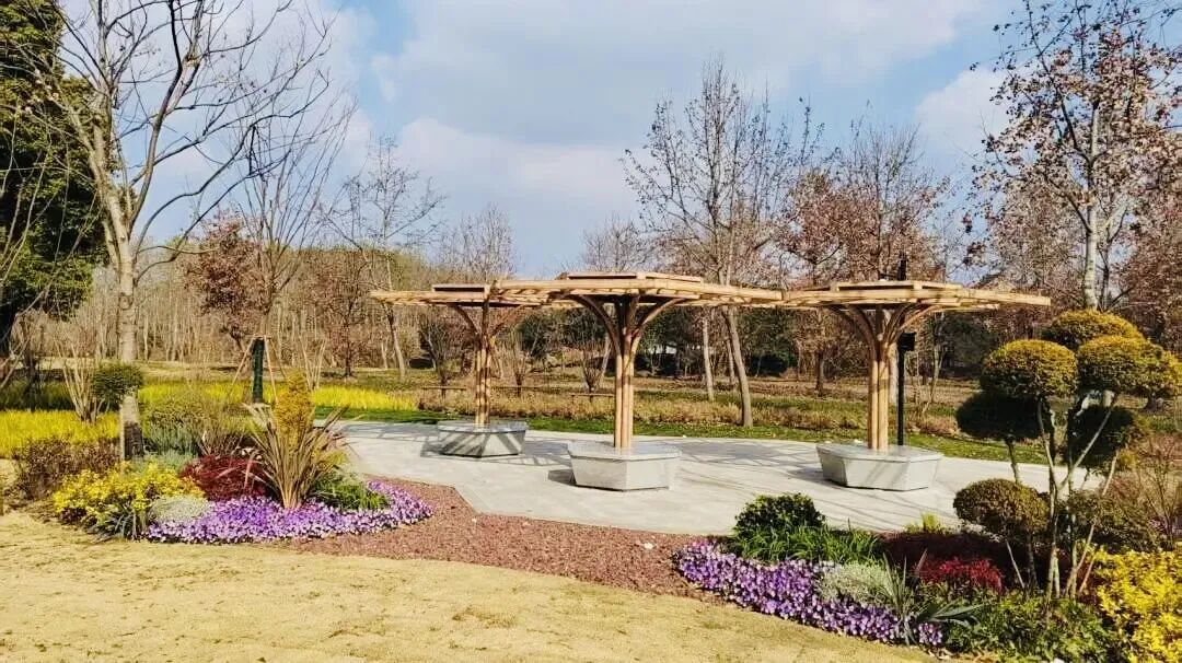 盛宅公园位于宝山区顾村镇,设有千米花溪、粉黛花坡、林丘栈道、童趣乐园等多处景点,植物配置突出“大美、通透、多彩”特色,为周边居民提供一处休闲漫步、交流互动、娱乐康体的绿色开放共享空间。