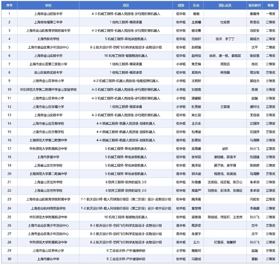 日前,第22届上海未来工程师大赛落下帷幕。金山区代表队荣获一等奖1项、二等奖5项、三等奖24项,华东师范大学第二附属中学金山实验学校荣获优秀组织奖。