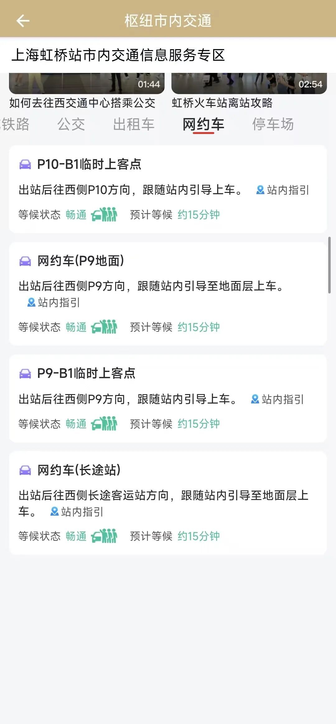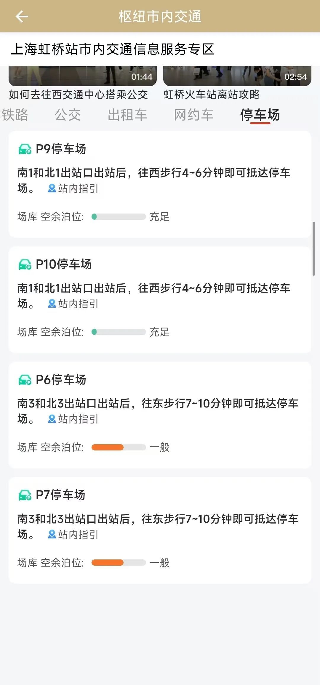 站点选择好后,可直接选择意向交通方式“地铁”“公交”“出租车”“网约车”等查看交通线路情况,有亲朋好友接送的旅客还可以选择“停车场”,查看车库空余泊位是否充足。