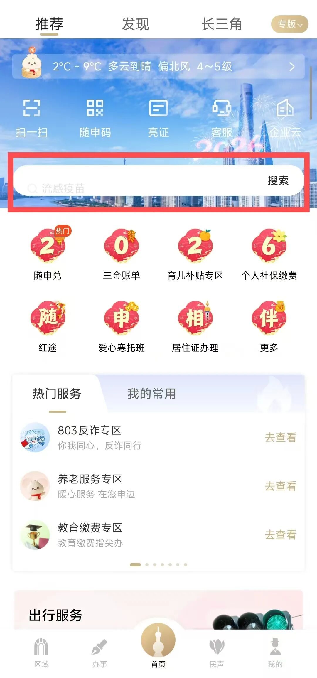 打开“随申办市民云”(APP/微信小程序/支付宝小程序),首页搜索栏输入「枢纽市内交通」,并点击进入专区。