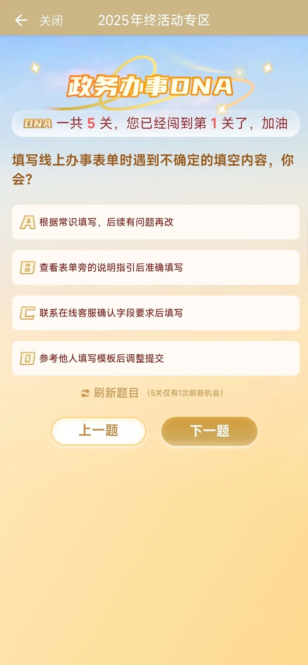 你想知道你的办事风格是什么类型吗?快来做做这5道测试题目,查看属于你的政务办事DNA吧~