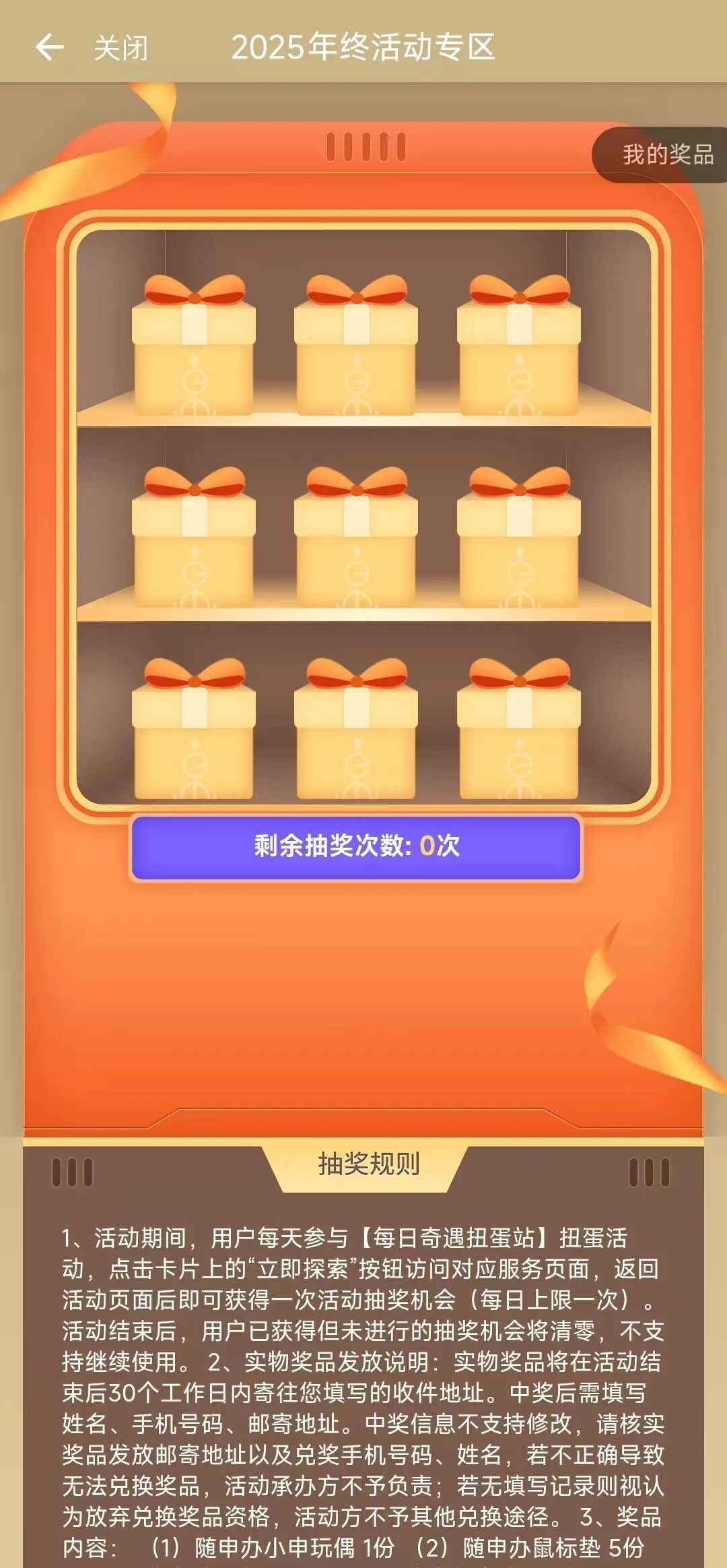 抽奖规则:每天参与扭蛋活动,可以获得一次抽奖的机会(每日上限一次)。