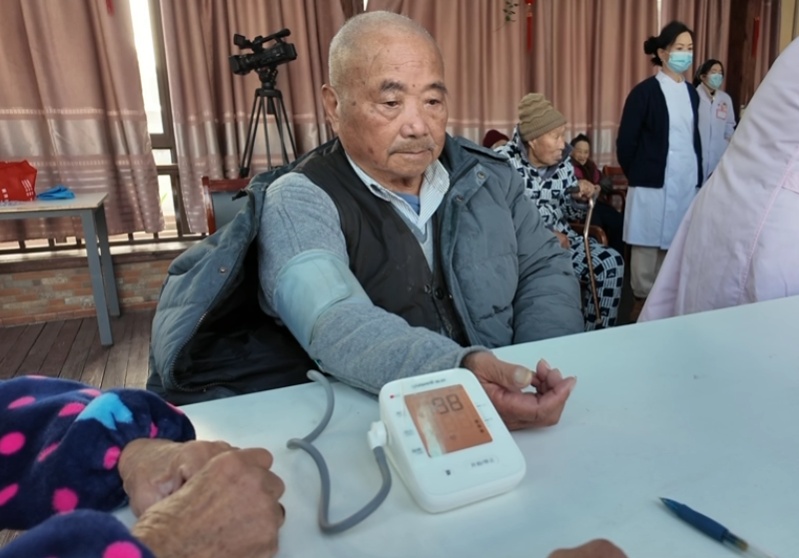 问诊检查环节,医护人员分工协作,有条不紊地开展服务。大家为老人测量血压、把脉看诊,细致解答老人关于各种常见病的疑问,并结合每位老人的身体状况,提供个性化的健康建议和用药指导。闻阿婆说:“年纪大了,出门看病不方便,现在医生上门服务,还免费检查,真是太贴心了!”