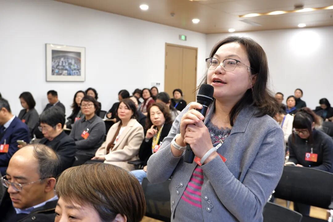 AI浪潮下,“AI焦虑”也随之而来。现场,刘旻代表提出这一“两难命题”:如何在助力企业智能转型的同时,保障个人在智能发展浪潮中不被替代、不被冲击?作为女性代表,她还特别关注区妇儿工委办如何应对这一趋势。