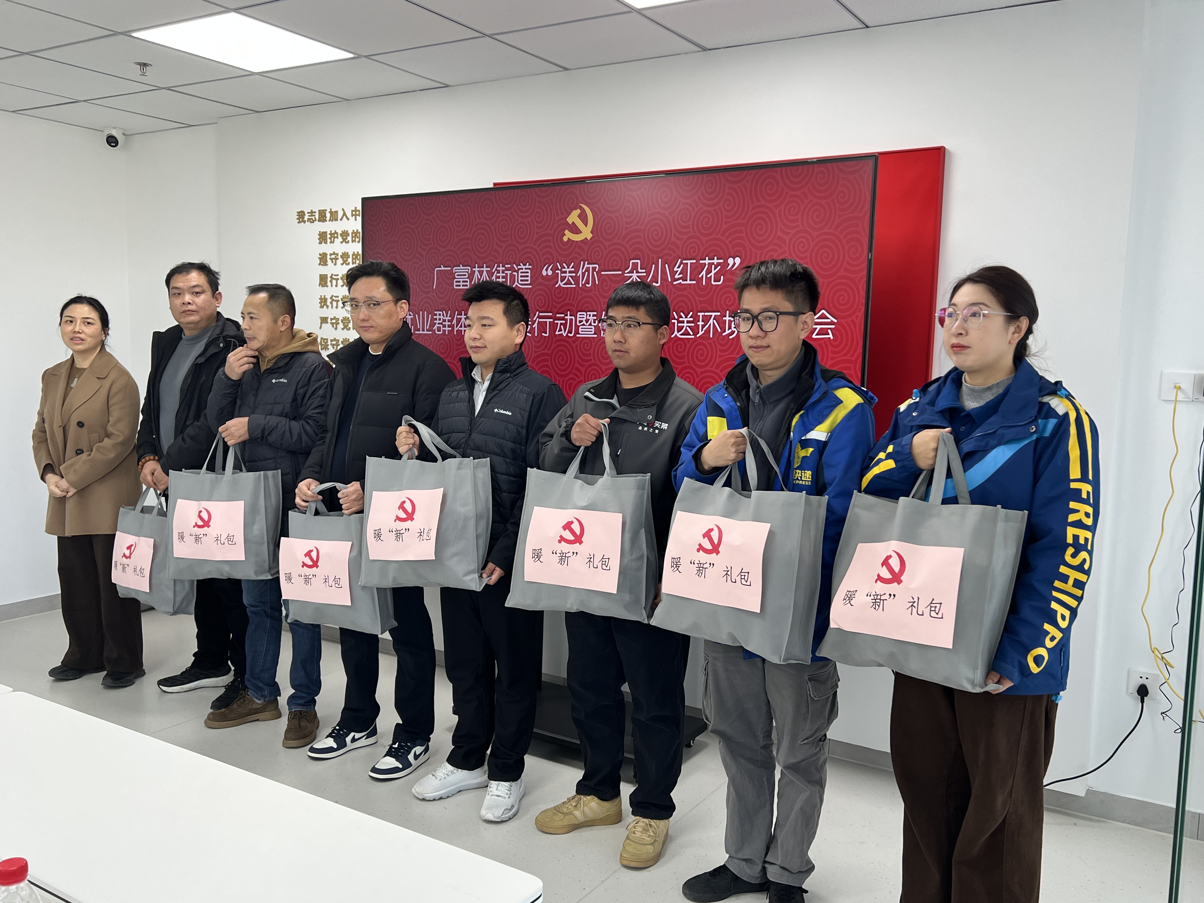 王龙收到的,正是松江区近日启动的“送你一朵小红花”慈善暖“新”行动之“冬送温暖”项目的慰问物资。该项目由松江区委组织部、区委社会工作部及上海市慈善基金会松江区代表处共同主办,旨在加强对新就业群体的关爱与凝聚。广富林街道作为首个启动物资发放的街镇,借当日举办的“送你一朵小红花”新就业群体送温暖行动暨优化配送环境协商会,率先将这份暖意送达劳动者手中。