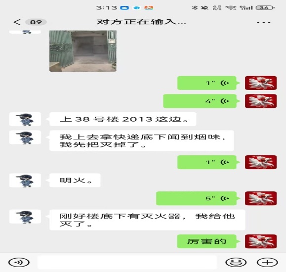 新机制在实践中迅速展现价值。此前,一位快递小哥在途经38号楼时,敏锐嗅到楼道内传来异常焦糊味。他立即循迹探查,发现潜在明火风险后,第一时间利用楼底下的灭火器进行扑救,并同步将现场情况上报。社区接报后,迅速启动应急联动,物业及消防志愿者火速赶到,彻底排除了隐患。这次成功的“早期干预”,生动诠释了群防群治“打早灭小”的巨大效用,避免了一起可能发生的火灾事故。