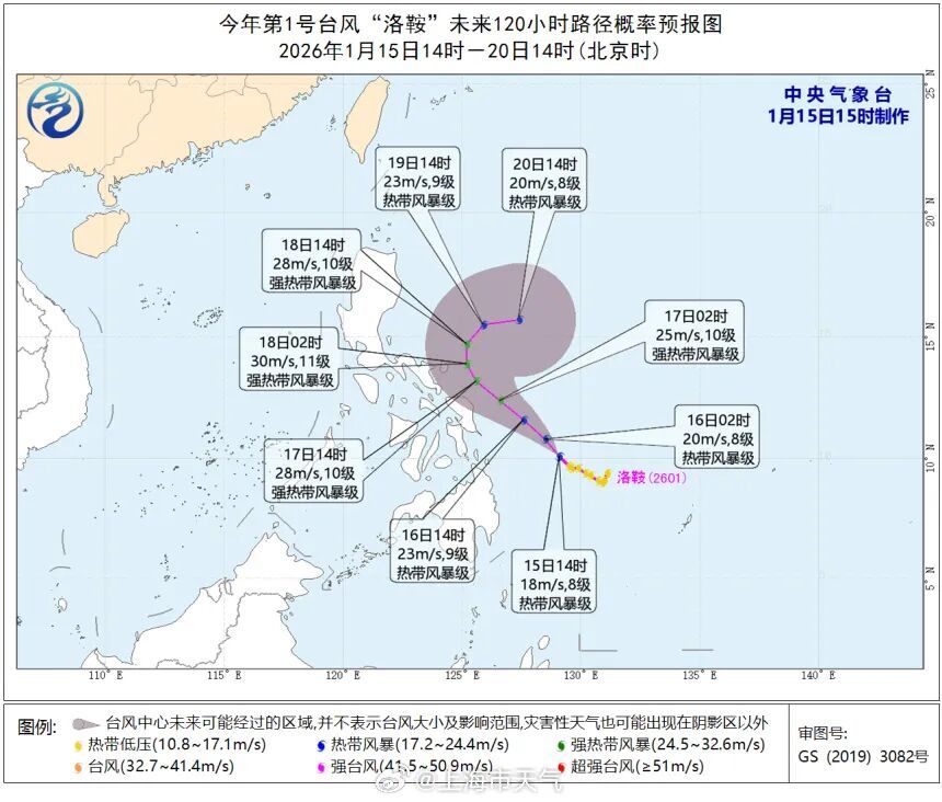 据中央气象台,今年第1号台风“洛鞍”(热带风暴级;英文名称:Nokaen;名字来源:老挝;名称意义:一种鸟;燕子)于1月15日下午2点钟在菲律宾以东洋面生成。
