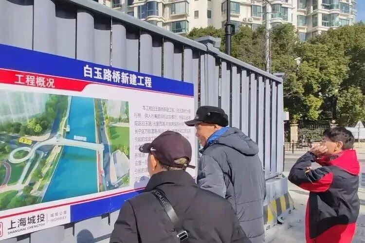记者走访的过程中,见到不少路过的行人纷纷驻足,对着施工围挡上公示的信息指指点点、议论纷纷。“以后过桥去中山公园,方便多了!”一位家住在白玉路某小区的老伯伯高兴地表示,有关建造白玉路桥的消息,前两年就听说过,现在终于开建了,内心非常期待,他希望这座桥本身能与苏州河的秀美风光相映成趣,成为一处可驻足、可观赏的风景线。