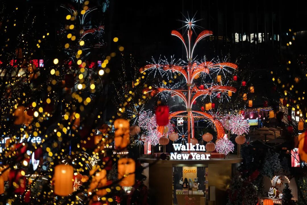 据龙湖上海虹桥天街相关负责人介绍,此次的设计灵感来自中国传统“树”与“花火”的意象,象征着生命的延续与节日的喜庆。树的基座装饰着中国传统灯笼和红色竹编,而向上延伸的枝丫则采用了现代感十足的流线型设计。“我们将传统春节元素与现代艺术设计巧妙融合,希望在旅客们抵达上海的第一站时就能感受到传统与现代交织的沪上新年氛围,让新年装饰成为这座国际化都市迎接全球来客的第一道风景。”