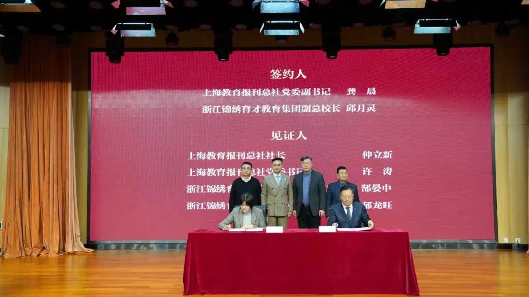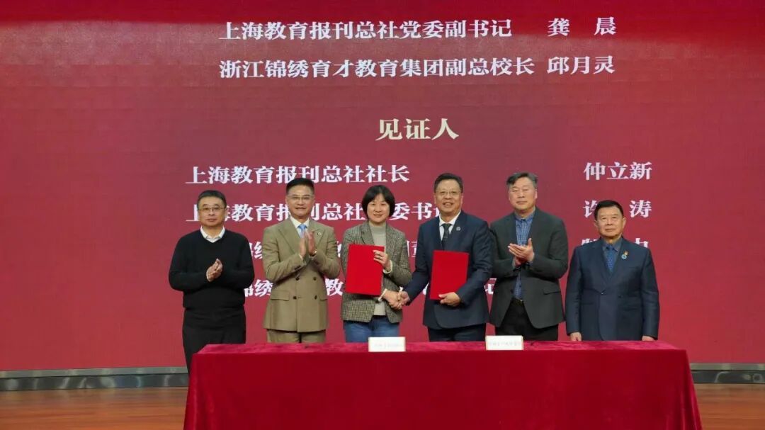 1月13日上午,冬日暖阳,在杭州拱墅区的浙江锦绣育才教育集团总部,上海教育报刊总社与浙江锦绣育才教育集团隆重签订战略合作仪式,此次签约是校媒联动育人的重要里程碑,更是教育创新发展的新起点。