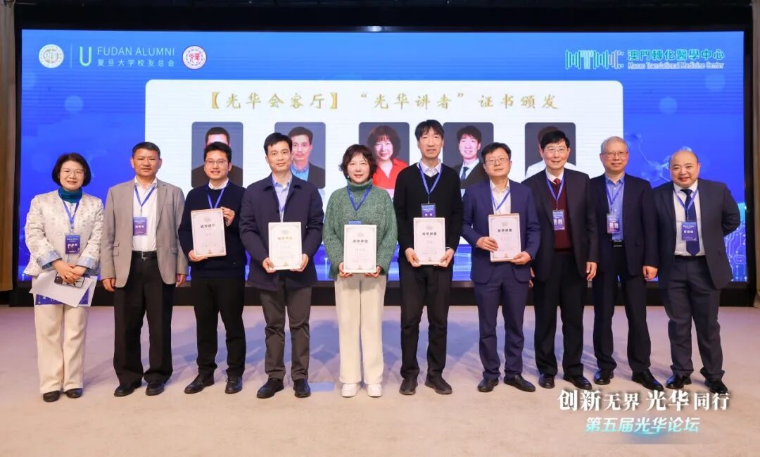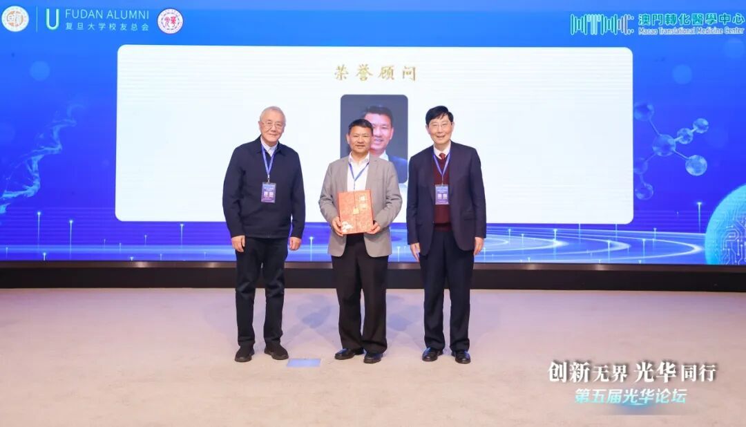 2026年1月10日,“第五届光华论坛”于复旦大学光华楼隆重举行。论坛由复旦大学、复旦大学校友总会、澳门科技大学基金会指导,复旦大学校友总会光华生命健康分会与澳门转化医学中心联合举办。论坛采取线下为主、线上结合的方式举办,线下参会600余人,线上观众30余万人 (仅开幕式及高峰论坛直播)。 当前,在全球化与科技革命的双轮驱动下,生命健康领域已进入“深度融合、快速发展”的新阶段,人工智能、脑机接口等前沿技术与转化医学的深度融合,正不断拓宽创新药物与疗法的转化路径。 本届论坛以“前沿引领、跨界融合、转化赋能”为主题,聚焦创新药物、转化医学、智能医学、脑机接口等前沿热点,致力于搭建思想交流与资源对接的高端平台,旨在助力打通临床医疗应用的需求端、科学问题导向原创探索的研发端与产业技术创新的驱动端,促进生命健康领域的行业闭环,为加速上海国际科创中心建设、探索我国生命健康领域创新发展新路径、激发创新能量贡献复旦“范式”与复旦“智慧”。 论坛开幕式 出席会议的有:(第一排从左至右)上海市政协港澳台侨委员会常务副主任张浩亮,复旦大学上海医学院党委副书记胡华忠,中国科学院院士、复旦大学校友总会光华生命健康分会理事长陈凯先,中国科学院院士、复旦大学校友总会光华生命健康分会荣誉理事长赵国屏,中国科学院院士、中国科学院杭州医学研究所所长谭蔚泓,(第二排从左至右)澳门转化医学中心主任、澳门科技大学副校长何耀,澳门科技大学荣誉院士、澳门科技大学基金会行政委员会委员苏香玫,复旦大学附属浦东医院党委副书记、院长李济宇,中国科学院分子植物科学卓越创新中心党委副书记、副主任张余,(第三排从左至右)复旦大学科学技术研究院副院长、医学科研处处长郁金泰,中国免疫学会副理事长、复旦大学免疫学系主任储以微,复旦大学特聘教授、希德书院院长卢宝荣,上海市静安区科技和经济委员会党组书记王志佳,以及平行论坛主席:(第五排从左至右)生命过程小分子调控全国重点实验室常务副主任丁克,复旦大学智能医学研究院常务副院长刘雷,复旦大学神经调控与脑机接口研究中心主任王守岩,论坛主持人:基因技术教育部工程研究中心主任卢大儒,(第六排从左至右)复旦大学校友总会光华生命健康分会秘书长白亚楠,复旦大学生命科学学院党委副书记丁澦,基因技术教育部工程研究中心副主任胡海荣,上海市药物研发协同创新中心主任邵黎明,上海合成免疫工程技术研究中心主任应天雷等复旦大学各相关学院领导。 韩启德:生命科学领域要做“顶天”或“立地”的事情 中国科学院院士、中国科学技术协会名誉主席、复旦大学校友总会光华生命健康分会荣誉理事长韩启德在论坛上致辞,亲切勉励分会的工作并对校友们提出殷切期望。 韩启德强调,医生首先要看好病,科研要从临床问题出发,落到临床,重在转化研究。 对于在科研机构的校友,韩启德提出生命科学领域要努力做“顶天”或“立地”的事情,“顶天”就是要“从0到1”,在重大科学问题上有创新突破,或解决核心关键技术问题;“立地”就是要能解决实际问题、要能转化应用,与医学临床、健康产业紧密结合。韩启德说,现在发表的有些文章,上不着“天”、下不着“地”,其实没有多大的价值,我们要提倡做有意义的研究。 对于在生物医药相关企业工作的校友,韩启德表示,技术创新一定要落地,实用性强。如果技术非常高精尖,但用不上,价值并不大。因此,韩启德建议,要注重做适宜的技术,也就是在当前社会发展阶段,应用最广、能给老百姓带来最大利益的技术。比如,老龄健康服务市场是非常广阔的,像“外骨骼”这样用于康复和满足失能老人所需的设备等,都有非常好的发展前景。 韩启德希望,复旦大学的校友要更加互相帮助,互相鼓励,为中华民族的复兴做出复旦校友更大的贡献。 胡华忠:复旦大学正在推动传统学科的逻辑向服务科技产业和社会的逻辑转变 复旦大学上海医学院党委副书记胡华忠代表校领导致辞。他表示,复旦大学校友总会光华生命健康分会自成立以来,短短四年间,构建起了具有凝聚力、影响力的生命健康行业校友生态圈,生动践行了服务母校、助力校友、报国为民的宗旨。学校和校友们双向赋能,在推动校地、院企融合上取得了扎实成果,有力服务国家重大战略,积极推动区域社会经济发展。 当前,复旦大学正在推动传统学科的逻辑向服务科技产业和社会的逻辑转变,将重心从建设哪些重点学科转到服务哪些战略领域上来,从服务哪些战略领域聚焦到重点服务哪些发展方向上来。 在生命健康相关领域,复旦大学持续推进学科交叉融合与原始创新,不断探索生命科学和医学的前沿,在学科融合与成果转化层面,通过搭建完善的成果转化体系,持续强化源头创新和产业发展的全链条衔接,为人民健康事业提供坚实的人才和成果支撑。 陈凯先:努力展现复旦人促进我国生命健康领域创新发展的影响力 中国科学院院士、复旦大学校友总会光华生命健康分会理事长陈凯先在论坛上致开幕词。他对复旦大学和校友总会领导及广大校友的关心支持表示衷心感谢,回顾了光华生命健康分会走过的历程,简要汇报了过去一年的工作。 自2022年1月8日成立至今,经过四年多的努力,分会目前已拥有14家