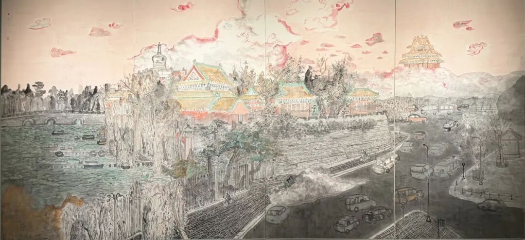 作品运用传统笔墨语言,将现代城市的节奏与情感纳入画面,让喧嚣的都市生活也拥有了浪漫的色彩,呈现出充满人文关怀的当代中国画意境。