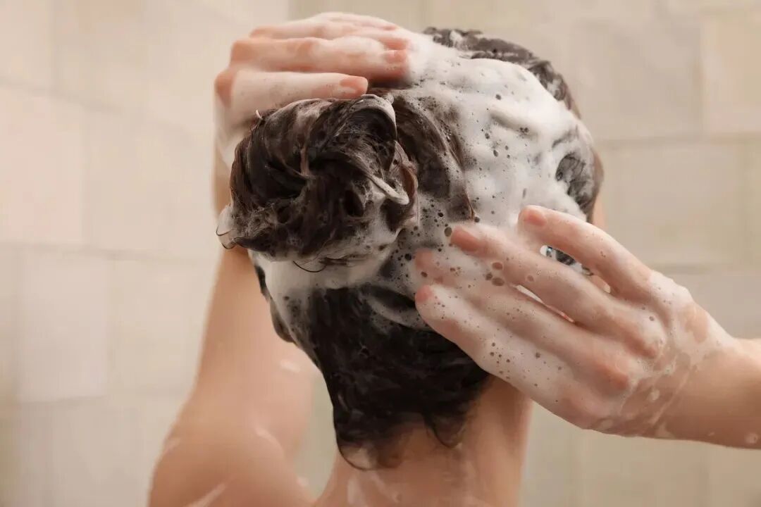 步骤二:把洗发水在手心揉搓出泡沫,再用指腹以打圈的方式按摩头皮。重点清洁发际线、头顶、后脑勺这些油脂容易堆积的区域,按摩时间建议30秒~1分钟,以便让泡沫充分溶解污垢。