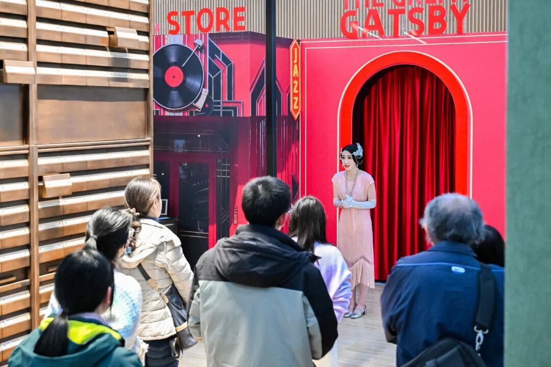 “爵士时代的回响:《了不起的盖茨比》出版百年纪念”主题沉浸展自2025年12月9日开展以来,好评如潮。展览持续吸引众多读者步入菲茨杰拉德笔下的浮华世界。在这里,你不仅可以感受爵士时代的独特魅力,还能走进复古宴会厅与电话亭,亲身参与一场跨越百年的时空对话。