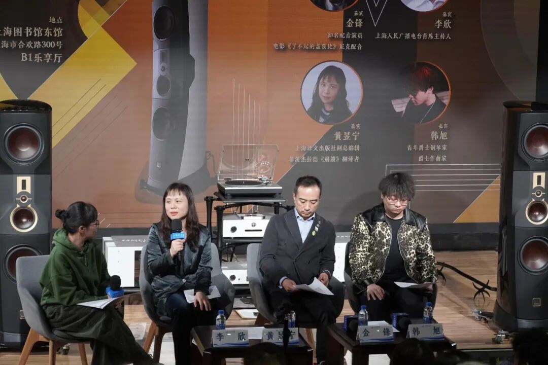 2025年12月21日,在B1乐享厅,乐听阅享·音响音乐文化月活动特邀上海人民广播电台首席主持人李欣、著名作家黄昱宁、配音艺术家金锋与爵士钢琴家韩旭,围绕《了不起的盖茨比》开启了一场文学、电影与音乐的跨界对话,一起看看精彩瞬间吧。