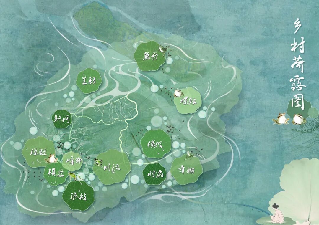 “六域”“八脉”“十二意象”诞生于寻找答案的过程。2023年,上海特色民居和村落风貌调研普查工作启动,一幅别具创意的“乡村荷露图”,以江南水乡烟雨画卷的形式展现出上海乡村地貌格局。分布于图中的12个意象名词,分别对应上海12种具有辨识度的地貌特征——珠链、纤网、星络、鱼脊、螺纹、横波、年轮、羽扇、川流、疏枝、棋盘和峰泖,这些诗化描绘带给了观众丰富的想象空间。
