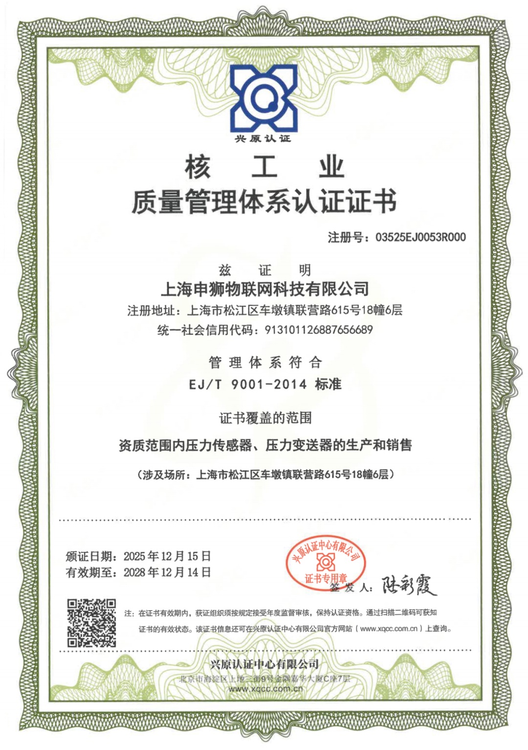 核工业质量管理体系认证证书